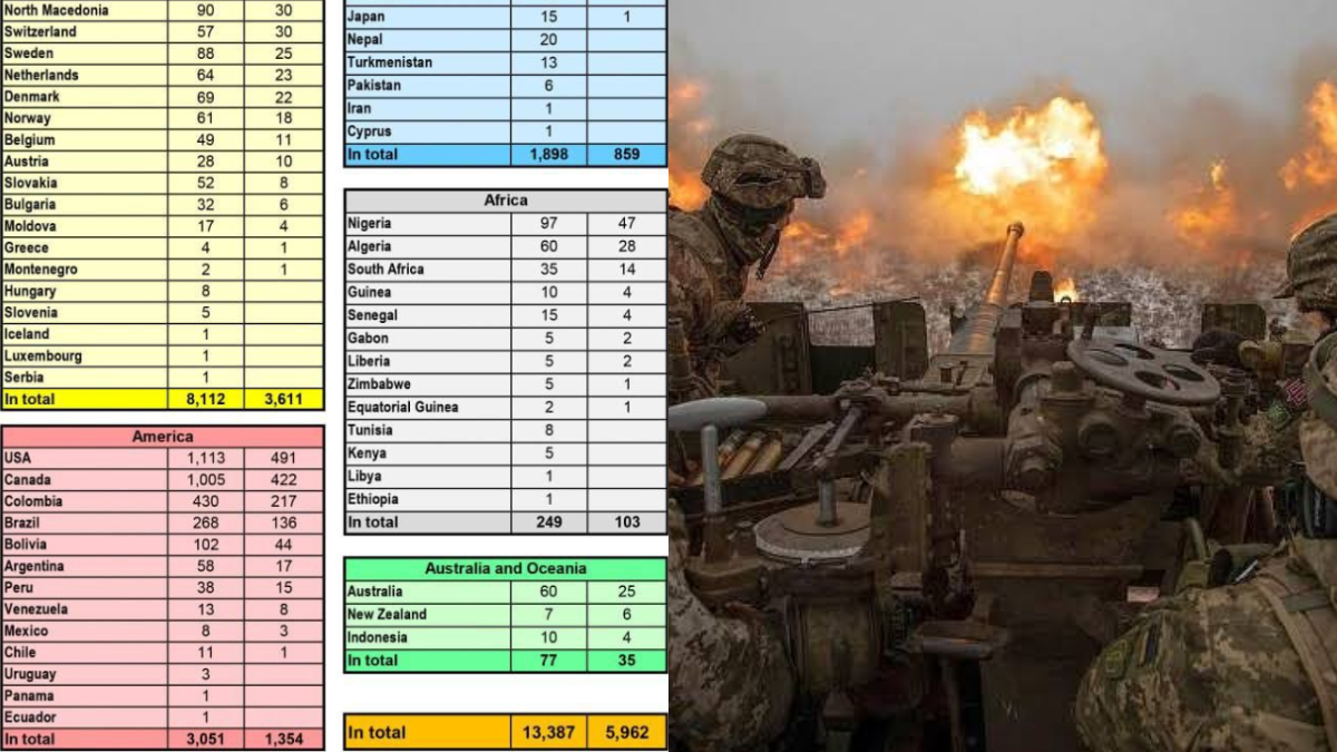 Dalam data tersebut, yang juga dirilis Kedubes Rusia di Jakarta, sedikitnya 13.387 tentara bayaran telah bertolak ke Ukraina.