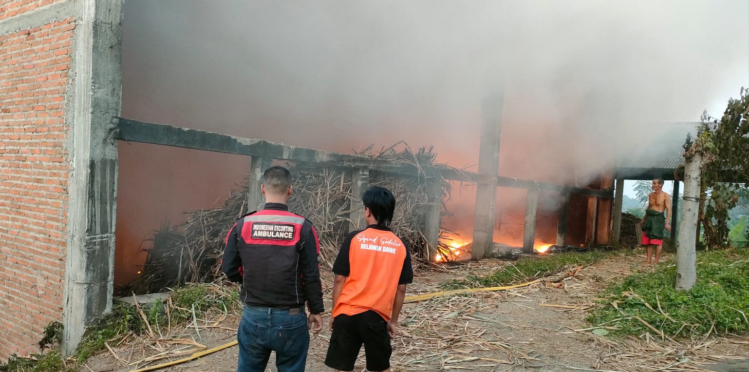 Thank you for reading this post, don't forget to subscribe!Kejadian ini diduga disebabkan oleh konsleting listrik yang kemudian menyambar tumpukan sampah ampas tebu dan spon di dalam gudang.
