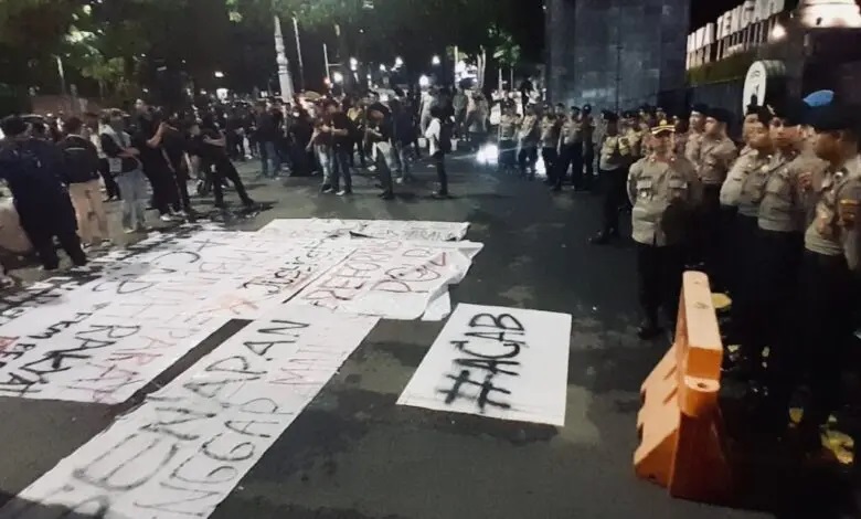 PANDUGA.ID, SEMARANG – Ratusan massa menggelar aksi demonstrasi di depan Markas Polda Jawa Tengah, Kelurahan Mugassari, Kecamatan Semarang Selatan, Kamis (28/11/2024). Aksi ini dilakukan sebagai bentuk protes atas kasus penembakan siswa SMKN 4 Semarang, GRO (17), yang diduga dilakukan oleh oknum polisi.